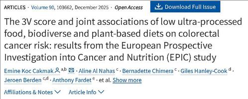 2025年12月,国际期刊《柳叶刀》子刊《电子临床医学》上刊发的一项覆盖45万人的欧洲研究指出,坚持“低超加工食品、高植物性饮食、高食物多样性”的饮食模式,能显著降低结直肠癌风险: