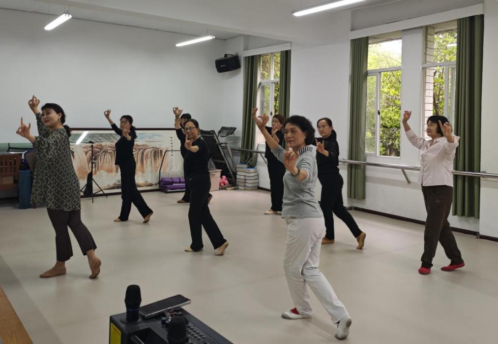 许岳军老师的舞蹈班则是一派灵动景象。结合老同志们的身体特点和兴趣,课程涵盖了民族舞、健身舞等多种形式。许老师动作分解清晰,讲解细致入微,不仅注重舞蹈的韵味表达,更强调科学健身。学员们跟着音乐的节拍,舒展身姿,步伐轻盈,在舞蹈中愉悦了心情,锻炼了体魄,尽显银龄风采与活力。